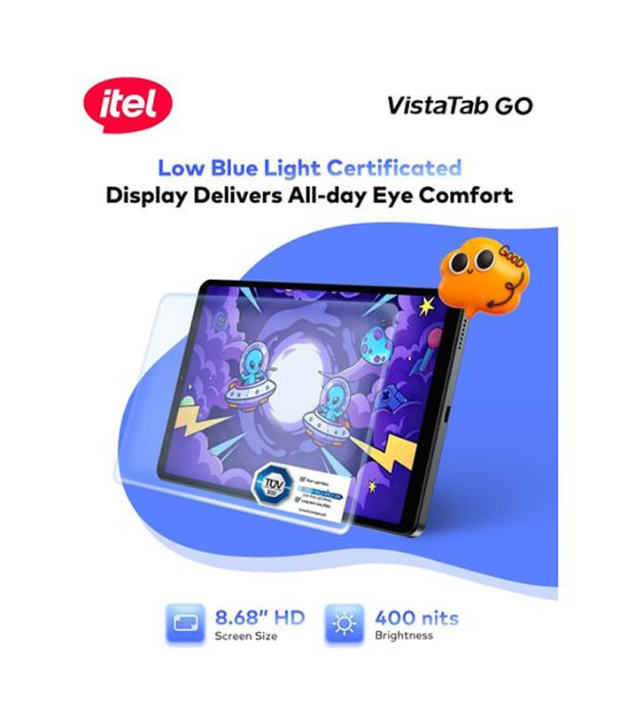 itel VistaTab Go 8.68 HD 64/4gb Bright Display 7000mah Kids Free Learning Center Low Blue Light Certification
