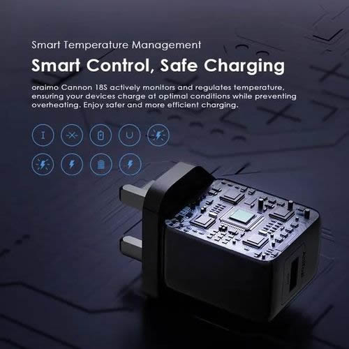oraimo Cannon 18S delivers a stable charge at speeds up to 18W, quickly powering up your device.