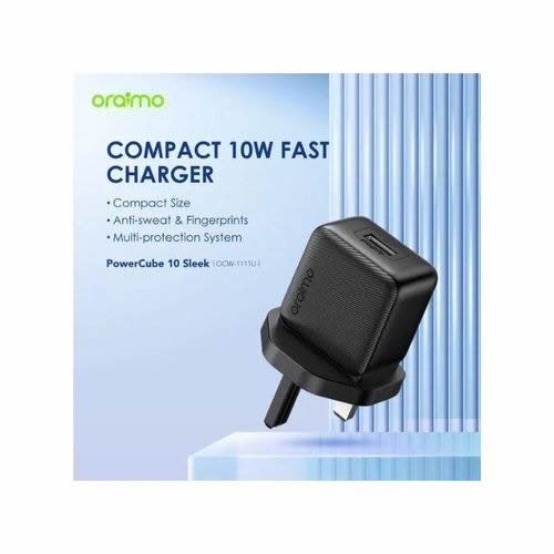 The Oraimo PowerCube 10 Sleek delivers 10W (5V/2A) fast, stable charging with a free 1m Micro-USB cable included. Built with a UK 3-pin plug, wide voltage support and strong safety protection.
