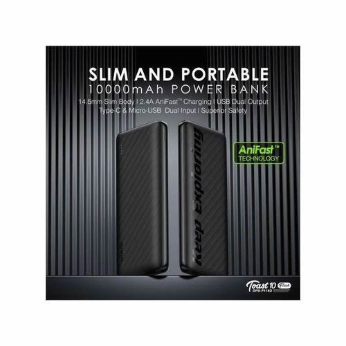 The Oraimo Toast 10 Flash is a slim, lightweight 10,000mAh power bank with 12W fast charging, dual USB output, flexible Micro USB + Type-C input, and multi-layer protection for safe, reliable charging anywhere.